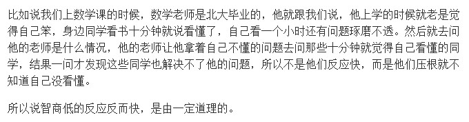 有人提出,智商高的反应慢,智商低的反应快,也正是这个道理。