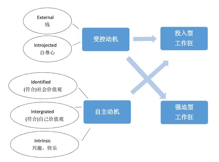 上图将工作狂分成投入型和强迫型,前者相对比较健康(无论是生理还是心理),后者相对更容易出现职业倦怠