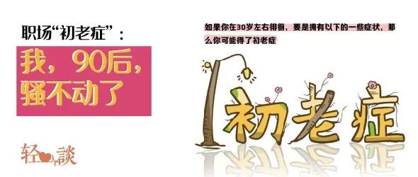 整个90后仿佛提前步入了“初老”世界,在过半的90后已踏入职场的今天,这些「初老」特征随处可见,不足为奇了。