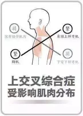 乌龟脖,医学上称之为“上交叉综合症”,因为不良姿势造成肌肉失衡,肩颈胸有的肌群紧绷,而有的肌群无力,两者相互链接形成交叉。